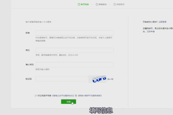3、在小程序界面中,填寫信息,點(diǎn)擊注冊(cè),即可開始制作微信團(tuán)購小程序。