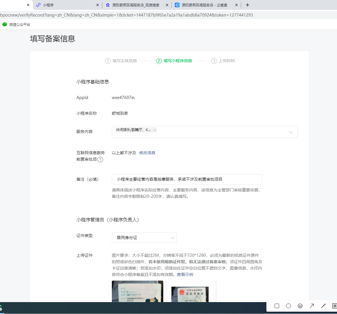 七、填寫小程序信息:小程序名稱必須顯示可使用、簡(jiǎn)稱可以不填、頭像找管理員要相關(guān)的、介紹是名稱+歡迎你