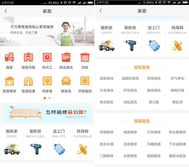 家政服務(wù)軟件的功能比較齊全,涉及到了生活的各個(gè)方面,其中也是生活必須的。住戶遇到各種的問題都是自己無法修,只能通過家政服務(wù)平臺(tái),聯(lián)系維修師傅,下單即可在家等待師傅上門